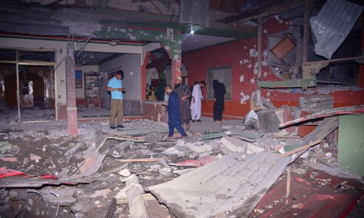 지난 7일(현지시간) 파키스탄령 카슈미르 무자파라바드 인근에서 주민들과 취재진이 인도의 미사일 공격으로 추정되는 공격으로 피해 입은 건물을 살피고 있다. AP연합뉴스 |