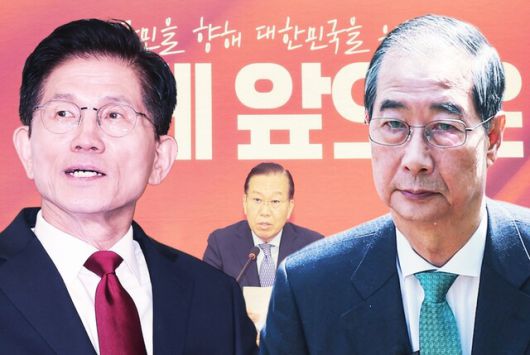 김문수 국민의힘 대통령 후보와 한덕수 무소속 후보의 8일 후보 단일화 협상이 이틀째 빈손에 그쳤다. 단일화 시점을 놓고 김 후보와 국민의힘 지도부가 극한의 ‘치킨 게임’을 이어가는 가운데, 지도부는 이날 후보 교체 가능성까지 내비치며 중앙선거관리위원회 후보 등록 마감일(11일) 이전 ‘강제 단일화’ 강행 뜻을 거듭 밝혔다. 김 후보는 법원에 직접 ‘대선 후보 지위 인정 가처분 신청’을 내고, ‘16일까지 단일화’를 주장하며 당의 찍어내기에 맞섰다.