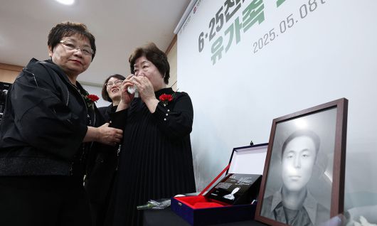 어버이날인 8일 송재숙(76)씨는 6·25전쟁에서 전사한 아버지 얼굴을 처음으로 마주했다. 송씨는 1951년 3월 부친 송영환 일병이 스물여섯의 나이로 세상을 떠났을 당시 겨우 세 살배기에 불과해 상상으로나마 그리운 얼굴을 그려왔다. 흑백 영정을 마주한 딸은 영정 앞에 떨리는 손으로 카네이션을 놓았다. 영정을 처음 본 순간 ‘이분이었구나’라는 생각이 들었다는 송씨는 “아버지 영정에 카네이션을 올려두었을 때 밑에서 올라오는 슬픔을 이루 말할 수가 없었다”면서 “한편으로는 ‘아버지가 나라를 위해 헌신해서 내게 이런 영광을 주시는구나’ 하는 생각도 했다”고 소감을 밝혔다.