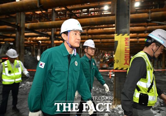 오세훈 서울시장이 지난달 23일 영동대로 지하공간 복합개발사업 지하 암반 굴착 현장을 점검하고 있다./서울시 |