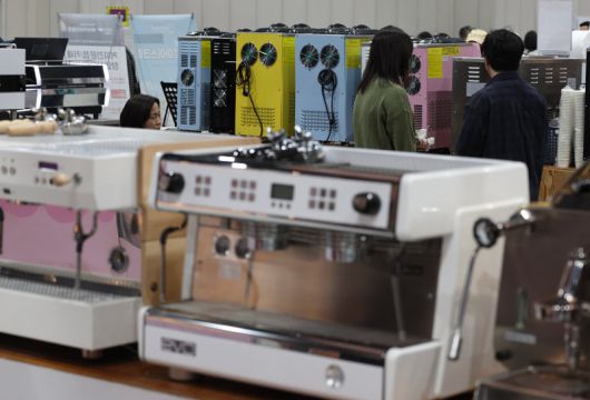 8일 오전 서울 강서구 코엑스마곡에서 개막한 ‘카페디저트페어’에서 관람객이 커피머신을 살펴보고 있다. 글로벌커피챔피언십 등이 함께 열리는 이번 페어는 11일까지 진행된다. 뉴시스 Copyright Ⓒ 동아일보. All rights reserved. 무단 전재, 재배포 및 AI학습 이용 금지