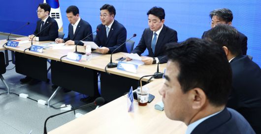 더불어민주당 윤호중 중앙선대위 총괄본부장(왼쪽에서 세 번째)이 8일 서울 여의도 민주당사에서 열린 총괄본부장단 회의에서 발언하고 있다. 윤 총괄본부장은 회의에서 “법원은 더불어민주당 이재명 대선 후보 관련 재판들의 나머지 공판 기일도 대선 이후로 변경해 사법부 스스로 자초한 논란을 결자해지해야 한다”고 말했다. 뉴스1 |