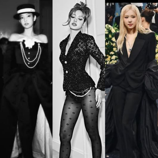 먼저, 샤넬의 앰버서더로 3년 연속 멧 갈라에 초청된 제니는 블랙 새틴 오프숄더 수트에 흰색 실크 까멜리아 장식이 더해진 블랙 오버스커트를 매치해 클래식하면서도 관능적인 룩을 선보였다. 여기에 블랙 앤 화이트 배색의 중절모와 진주 장식을 더해 완성도를 끌어올렸다. 1920년대 패션에서 영감을 받은 이 룩은 제작에만 330시간이 소요된 것으로 알려졌다.