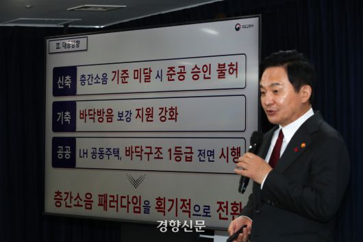 지난 2023년 12월11일 원희룡 당시 국토교통부 장관이 정부서울청사에서 ‘공동주택 층간소음 해소방안’을 발표하고 있다. 이준헌 기자 |