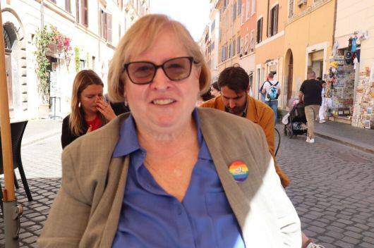 지난 7일 바티칸 성 베드로 광장 인근에서 만난 가톨릭 최대 퀴어 인권 그룹인 국제 퀴어 가톨릭 단체(GNRC)의 공동의장 메리앤 더디버크. 사진 장예지 특파원 |