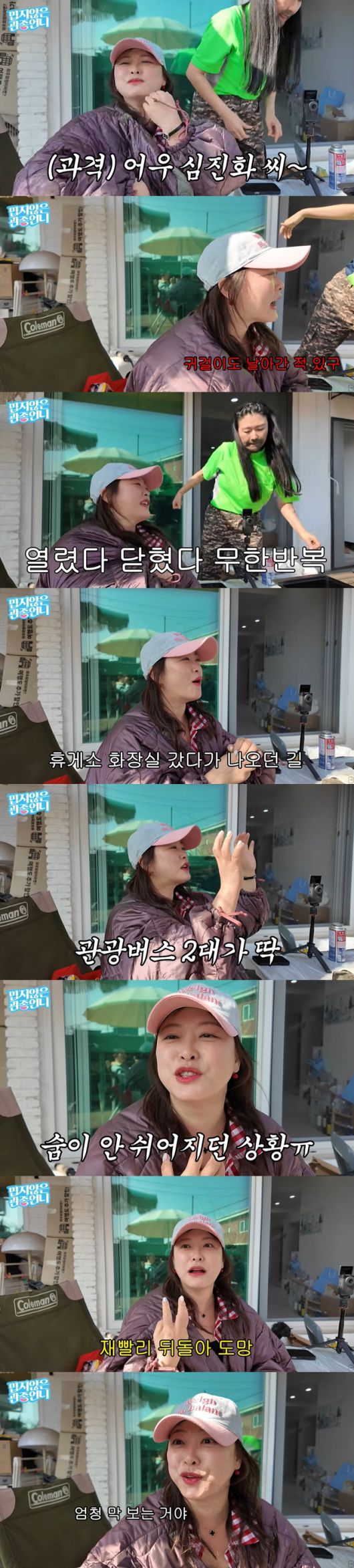 그러면서 심진화는 "한번은 휴게소 화장실 갔다가 나오던 길이었는데, 갑자기 내가 가는 길 앞에 관광버스 2대가 서더라. 어머님들이 몇십명이 나오는데 순간적으로 숨이 안 쉬어지더라. 너무 무섭더라"라며 "그래서 재빨리 뒤로 돌아서 도망갔다. 트라우마가 약간 있다"고 고백해 충격을 안겼다.