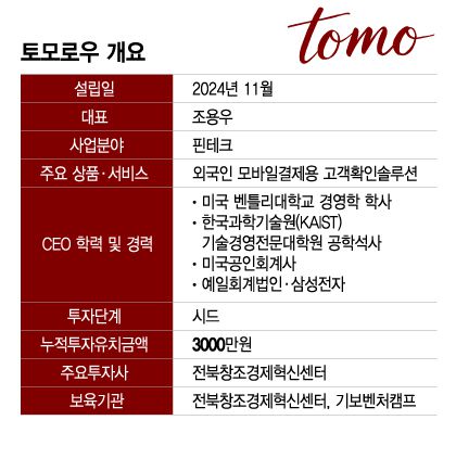 토모로우는 본인 인증에 머무르지 않고, 향후 은행 계좌 개설, 외국인 등록증 발급 등 '디지털 신원 플랫폼'으로의 확장을 계획하고 있다. 조 대표는 실제로 한 시중은행과 협력 논의를 진행 중이며, 금융 규제 샌드박스를 통한 제도 진입도 준비하고 있다고 밝혔다. 특히, 최근 기술보증기금의 '기보벤처캠프' 16기, 우리금융 디노랩 전북센터 1기 등에 선발돼 멘토링·투자연계·국내외 네트워크 지원 등 다양한 성장 기반도 확보한 상태다.