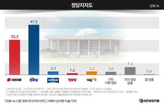 [그래픽] 정당지지도(2025년 5월 7일 기준)