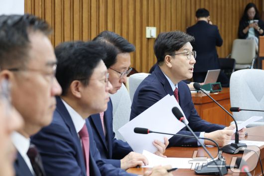 (서울=뉴스1) 안은나 기자 = 권성동 국민의힘 원내대표가 9일 오전 서울 여의도 국회에서 열린 원내대책회의에 참석해 모두 발언하고 있다. 2025.5.9/뉴스1