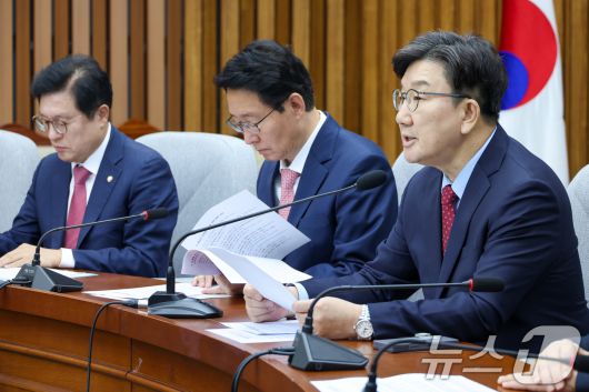 (서울=뉴스1) 안은나 기자 = 권성동 국민의힘 원내대표가 9일 오전 서울 여의도 국회에서 열린 원내대책회의에 참석해 모두 발언하고 있다. 2025.5.9/뉴스1