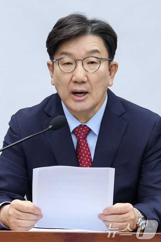 (서울=뉴스1) 안은나 기자 = 권성동 국민의힘 원내대표가 9일 오전 서울 여의도 국회에서 열린 원내대책회의에 참석해 모두 발언하고 있다. 2025.5.9/뉴스1coinlocker@news1.krCopyright ⓒ 뉴스1. All rights reserved. 무단 전재 및 재배포, AI학습 이용 금지.