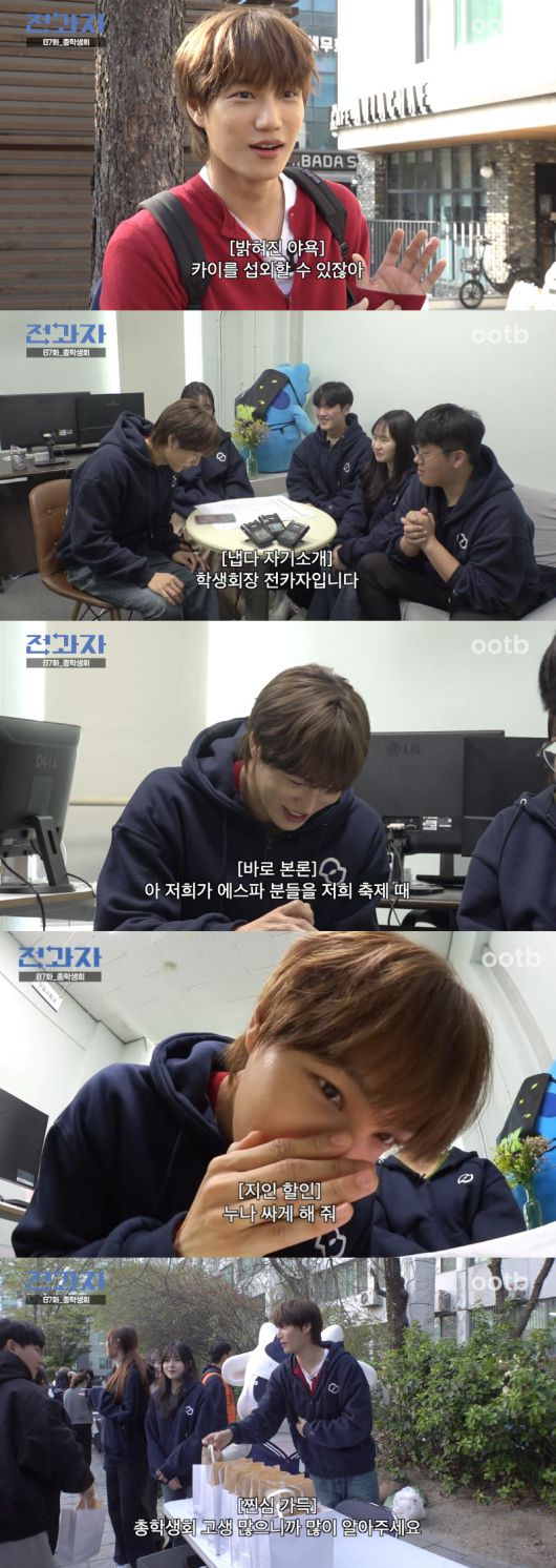 이어 총학생회장 대행을 자처한 카이는 "두 다리 건너면 바로"라며 에스파 담당자와 즉석 통화를 진행해 학생회 임원들의 기대를 한 몸에 받았다. 카이는 남다른 적극성과 입담을 뽐내는가 하면 관계자에게 "누나 싸게 해 줘", "누나 진짜 부탁해. 내 어깨 한 번만 올려줘"라고 애원해 현실 웃음을 자아냈다.