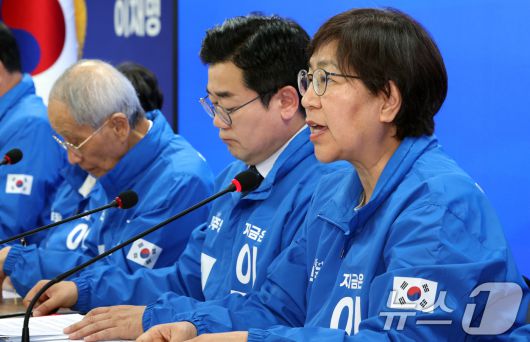 (서울=뉴스1) 김명섭 기자 = 정은경 더불어민주당 제21대 대통령 선거 총괄선거대책위원장이 9일 오전 서울 영등포구 여의도 당사에서 열린 중앙선거대책회의에서 발언을 하고 있다. 2025.5.9/뉴스1msiron@news1.krCopyright ⓒ 뉴스1. All rights reserved. 무단 전재 및 재배포, AI학습 이용 금지.