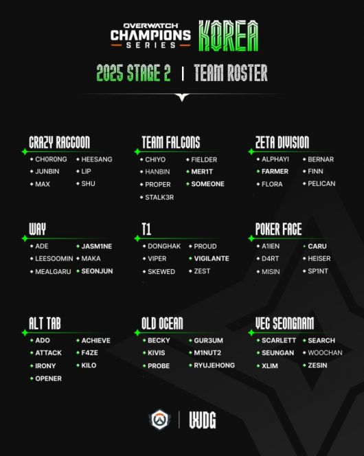 치열한 예선전과 승강전을 통해 합류한 4개 팀에는 포커 페이스(Poker Face), VEC 성남(VEC SEONGNAM), 온사이드 게이밍(ONSIDE GAMING, 구 Alt Tab), 올드 오션(Old Ocean)이 이름을 올렸다. 이 중, 올드 오션은 오버워치 이스포츠의 레전드 류제홍(Ryujehong)이 소속된 팀으로 지난해 열린 2024 OWCS 코리아 스테이지 2에서 거두지 못한 OWCS 정규 시즌 사상 첫 승에 도전하게 되며 주목받고 있다.