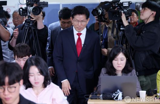 [서울=뉴스핌] 정일구 기자 = 김문수 국민의힘 대선 후보가 9일 오전 서울 여의도 선거캠프에서 안보 관련 정책 발표를 위해 이동하고 있다. 2025.05.09 mironj19@newspim.com