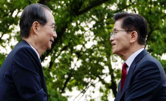 김문수 국민의힘 대선 후보와 한덕수 무소속 대선 예비후보가 8일 국회 사랑재에서 만나 후보 단일화를 위한 2차 회동을 마친 뒤 인사하고 있다. 2025.5.8 김현민 기자 |