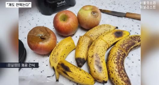 윤석열 전 대통령 처가에서 운영하는 요양원이 입소자들에게 제공했다는 간식.(사진='서울의 소리' 유튜브 채널) |