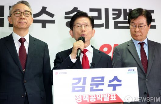 [서울=뉴스핌] 정일구 기자 = 김문수 국민의힘 대선 후보가 9일 오전 서울 여의도 선거캠프에서 북핵 억제력 강화 등 안보 관련 정책 발표를 하고 있다. 2025.05.09 mironj19@newspim.com