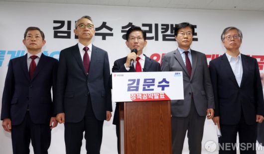 [서울=뉴스핌] 정일구 기자 = 김문수 국민의힘 대선 후보가 9일 오전 서울 여의도 선거캠프에서 북핵 억제력 강화 등 안보 관련 정책 발표를 하고 있다. 2025.05.09 mironj19@newspim.com