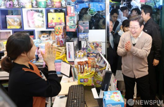 골목골목 경청투어 나선 이재명 후보, 초등학교 앞 문구점 방문