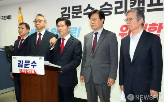 [서울=뉴스핌] 정일구 기자 = 김문수 국민의힘 대선 후보가 9일 오전 서울 여의도 선거캠프에서 북핵 억제력 강화 등 안보 관련 정책 발표를 하고 있다. 2025.05.09 mironj19@newspim.com