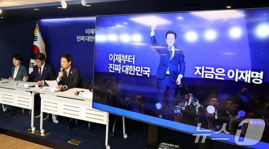 (서울=뉴스1) 김명섭 기자 = 김영호 제21대 대통령선거 더불어민주당 중앙선거대책위원회 홍보본부장이 4일 오전 서울 영등포구 여의도 당사에서 대선 홍보캠페인 기조 브리핑을 하고 있다. 2025.5.9/뉴스1