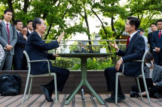 김문수 국민의힘 대선 후보와 한덕수 무소속 대선 예비후보가 8일 국회 강변서재에서 후보 단일화 관련 회동을 하고 있다. 2025.5.8 김현민 기자 |