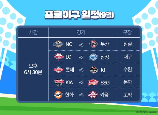 1위 한화 이글스는 키움을 상대로 엄상백이 나선다. 키움은 토종 1선발 하영민이 나선다. 롯데와 kt는 각각 나균안과 고영표를 내보낸다. 양 팀 모두 상위권에 있는 만큼 치열한 승부가 예측된다.