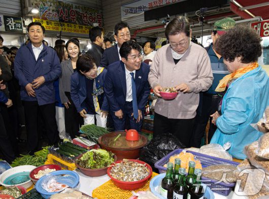 (영천=뉴스1) 이재명 기자 = 3차 경청투어에 나선 이재명 더불어민주당 대통령 후보가 9일 오전 경북 영천시완산동 영천공설시장에서 마른고추를 구입하고 있다. 2025.5.9/뉴스12expulsion@news1.krCopyright ⓒ 뉴스1. All rights reserved. 무단 전재 및 재배포, AI학습 이용 금지.