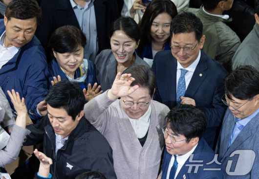 손 흔들며 인사하는 이재명