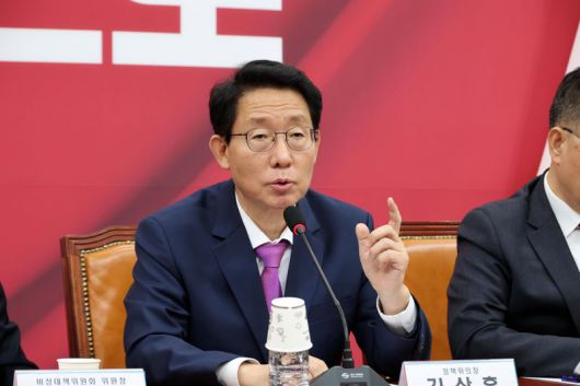김상훈 국민의힘 정책위의장이 8일 서울 여의도 국회에서 열린 비상대책위원회의에서 발언하고 있다. 사진=박범준 기자 |