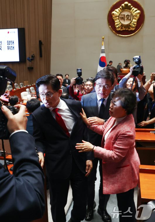 떠나는 김문수 붙잡는 국민의힘 의원들