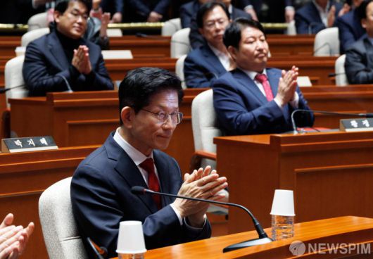 [서울=뉴스핌] 윤창빈 기자 = 김문수 국민의힘 대선 후보가 9일 오전 서울 여의도 국회에서 열린 의원총회에서 박수를 치고 있다. 2025.05.09 pangbin@newspim.com