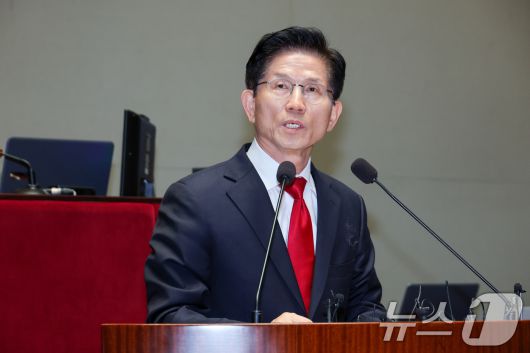 (서울=뉴스1) 안은나 기자 = 김문수 국민의힘 대통령 후보가 9일 서울 여의도 국회에서 열린 의원총회에서 지도부를 향해 "무소속을 당 후보 만들려 불법부당 수단 동원, 중단하라"며 입장을 밝히고 있다. 2025.5.9/뉴스1coinlocker@news1.krCopyright ⓒ 뉴스1. All rights reserved. 무단 전재 및 재배포, AI학습 이용 금지.