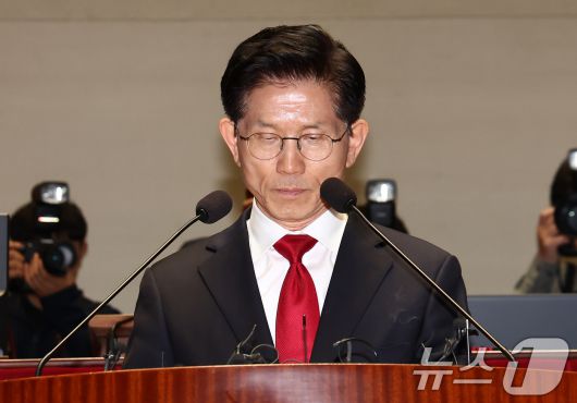 (서울=뉴스1) 김민지 기자 = 김문수 국민의힘 대통령 후보가 9일 오전 서울 여의도 국회에서 열린 의원총회에서 인사말 도중 생각에 잠겨 있다. 2025.5.9/뉴스1kimkim@news1.krCopyright ⓒ 뉴스1. All rights reserved. 무단 전재 및 재배포, AI학습 이용 금지.