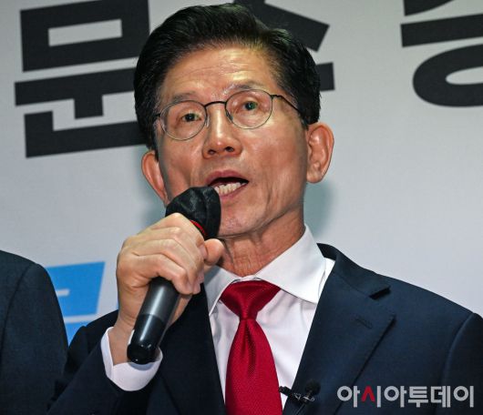 아시아투데이 송의주 기자 = 김문수 국민의힘 대선 후보가 9일 서울 여의도 선거사무소에서 북핵 억제력 강화 공약 발표를 하고 있다.