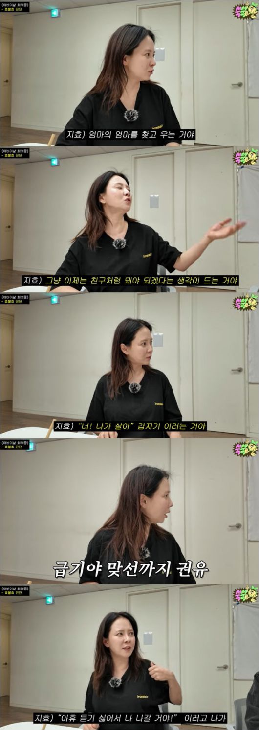 하지만 가출한 적도 있다고. 송지효는 "25살에서 30대 초반에 누구 결혼식만 갔다 오면 결혼하라고 잔소리를 하는 거다. 너는 언제 시집 갈 거냐. 다음주에 날 잡을 테니까 만나고 오라더라. 그래서 집을 나갔다. 화난 걸 보여주려고 액션을 크게 했다. '듣기 싫어서 나갈 거야' 했는데 엄마가 잡을 줄 알았는데 절대 안 잡는다 전화도 안 온다. 내가 알아서 기어 들어갔다"며 "일주일 정도 청평 이런 데 있다가 집으로 들어왔다. 이후에 잔소리를 안 했다. 그거 때문에 생각해보면 불효를 많이 저지른 거 같다"고 털어놨다.