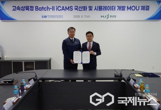(사천=국제뉴스) 구정욱 기자 = 한국항공우주산업(KAI)은 HJ중공업과 지난 7일 '고속상륙정 Batch-Ⅱ ICAMS 국산화 및 시뮬레이터 개발 MOU'를 체결했다.