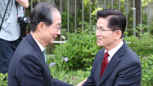 국민의힘 김문수 대선 후보와 무소속 한덕수 대선 예비 후보가 8일 서울 국회 사랑재에서 2차 회동을 가지고 있다./남강호기자 |