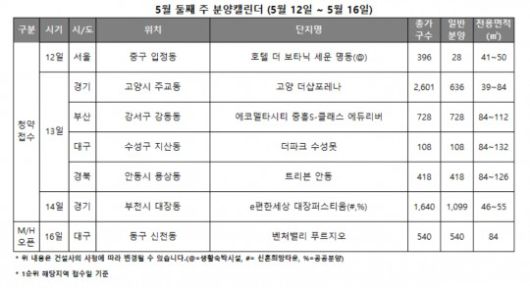 5월 2주 분양캘린더 / 자료제공=리얼투데이 |