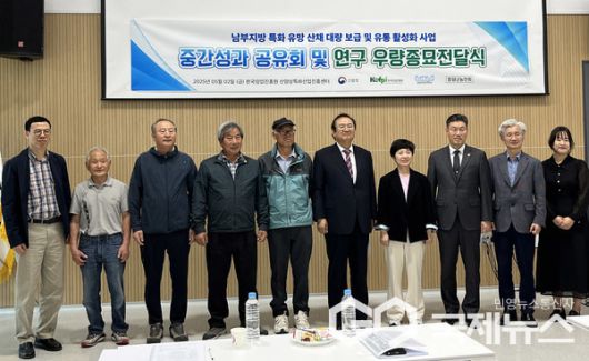 (진주=국제뉴스) 구정욱 기자 = 경상국립대 남부산채사업단과 한국임업진흥원 산양삼특화산업진흥센터는 함양군 백전면 유천리 일원서 '2025 스마트산림경영 기술개발사업 중간성과 공유회 및 연구우량종묘 전달식'을 개최했다고 9일 밝혔다.