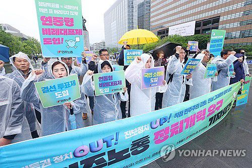 민주노총은 이날 서울 종로구 광화문광장에서 기자회견을 열고 "거대 양당 중심의 기득권 정치가 불평등과 사회적 양극화를 심화시키는 현실을 바꾸기 위해 결선투표제 도입, 연동형 비례대표제 확대, 국민소환제 및 국민발안제 도입 등 정치개혁을 요구한다"고 밝혔다.