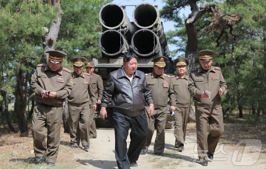 (평양 노동신문=뉴스1) = 김정은 북한 노동당 총비서가 지난 8일 진행된 장거리포 및 미사일체계 합동타격훈련을 지도했다고 당 기관지 노동신문이 9일 보도했다. 이번 훈련에는 '600mm 다연장 방사포'와 전술탄도미사일 '화성포-11가형'이 동원됐다. [국내에서만 사용가능. 재배포 금지. DB 금지. For Use Only in the Republic of Korea. Redistribution Prohibited] rodongphoto@news1.kr |