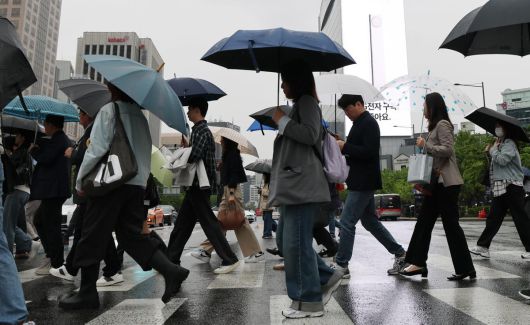 전국 대부분 지역에 비가 내린 9일 오전 서울 광화문네거리에서 우산을 쓴 시민들이 출근하고 있다. 2025.5.9 뉴스1 |