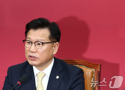 (서울=뉴스1) 김민지 기자 = 이양수 국민의힘 사무총장이 9일 오후 서울 여의도 국회에서 김문수 대통령 후보와 한덕수 무소속 예비후보의 단일화 관련기자회견을 하고 있다. 2025.5.9/뉴스1