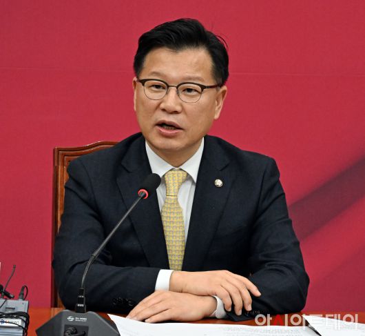 아시아투데이 송의주 기자 = 이양수 국민의힘 사무총장이 9일 국회에서 김문수 대선 후보와 한덕수 무소속 예비후보의 단일화 관련 기자회견을 하고 있다.