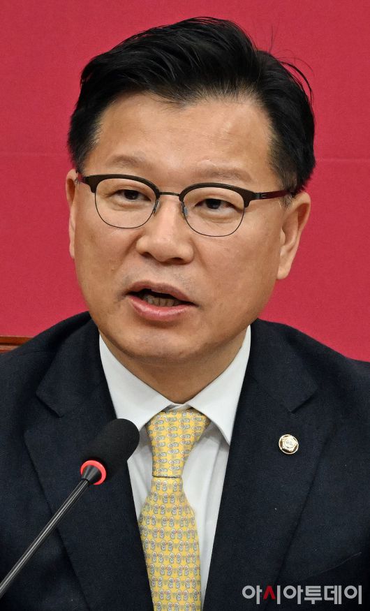 아시아투데이 송의주 기자 = 이양수 국민의힘 사무총장이 9일 국회에서 김문수 대선 후보와 한덕수 무소속 예비후보의 단일화 관련 기자회견을 하고 있다. ⓒ "젊은 파워, 모바일 넘버원 아시아투데이"