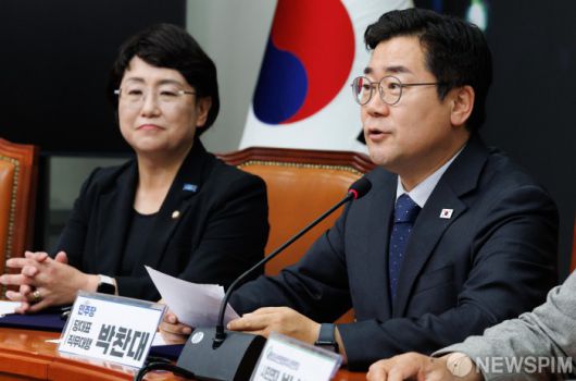 [서울=뉴스핌] 윤창빈 기자 = 박찬대 더불어민주당 대표 직무대행이 9일 오후 서울 여의도 국회에서 열린 광장대선연합정치시민연대-제정당 연석회의공동 선언 발표 기자회견에서 발언하고 있다. 2025.05.09 pangbin@newspim.com
