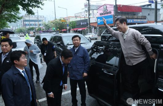 [칠곡=뉴스핌] 최지환 기자 = '골목골목 경청투어'에 나선 이재명 더불어민주당 대선후보가 9일 오후 경북 칠곡군 석적읍을 방문해 주민들에게 인사하고 있다. 2025.05.09 choipix16@newspim.com