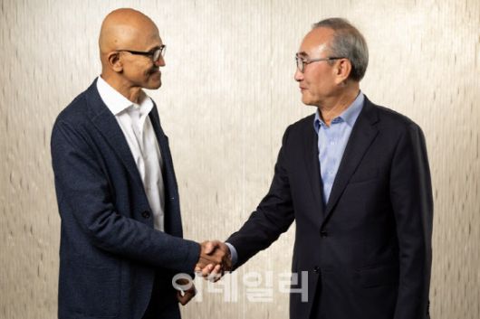 김영섭(오른쪽) KT 대표와 사티아 나델라 마이크로소프트(MS) CEO.(사진=KT) |